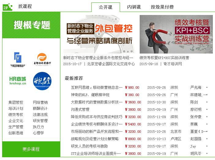 網(wǎng)站一層特惠搶票,給您優(yōu)惠特價課;二層找課程 公開內(nèi)訓(xùn)全部囊括;三層找講師,名師聚集任您選擇;四層認(rèn)證店鋪,誠信商家讓您更放心